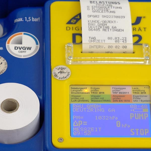 - Belastungs- und Dichtheitsprüfung von Erdgasleitungen (1 bar / 150 hPa) nach TRGI 2018