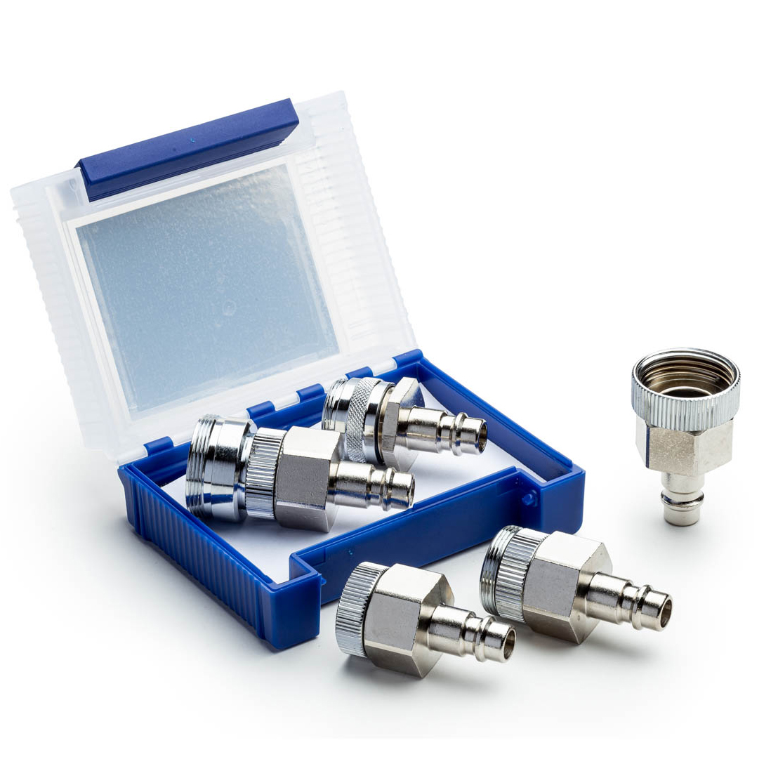 Lieferumfang: 1 Stck. IG 22×1, 1 Stck. AG 22×1, 1 Stck. AG 24×1, 1 Stck. AG 28×1, 1 Stck. IG 3/4″ in der Kunststoffbox (mini).