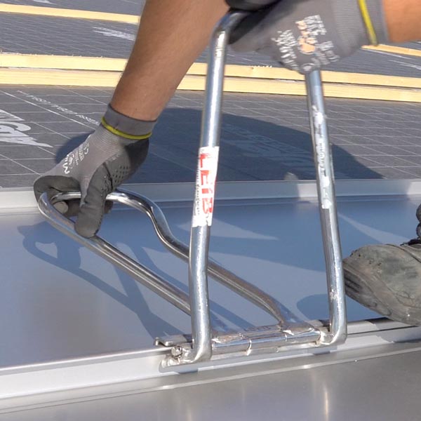 Eingesetzt wird der manuelle Winkelfalzschließer zum Schließen des Profils SPM 30/80. Das schonende Weiterführen des Arbeitsgerätes vermeidet dabei Druckstellen an den Übergängen. Die ergonomische Anordnung der Griffe macht den Winkelfalzschließer besonders anwenderfreundlich.